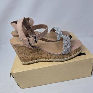 Madden NYC Womens Size 11 Braided Rhinestone Wedge Heel Strappy Sandals