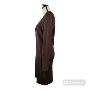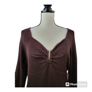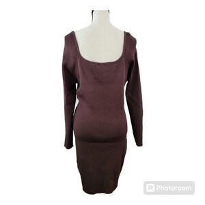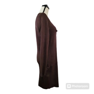 new with tag. this dress is very soft. great stretch. made to hug your curves. the bust has decorative v with a medal insert to make sure it stays. great color for fall. thus dress would look fabulous with a pair of knee high boots.