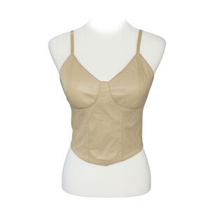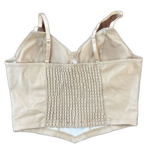 Madden NYC Faux Leather Beige Smocked Back Bustier Crop Top Adjustable Straps L