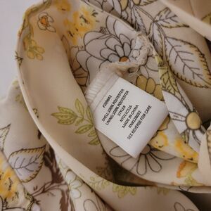 This New York & Company crop top in size 2XL features a floral pattern, sweetheart neckline, and balloon sleeves. It has a hippie, bohemian, retro vibe and is perfect for travel or casual wear. Made of lightweight polyester, it is ideal for summer, fall, and spring. The top is multicolored and ties at the closure. Perfect for women looking for a stylish and comfortable blouse with a vintage-inspired flair.