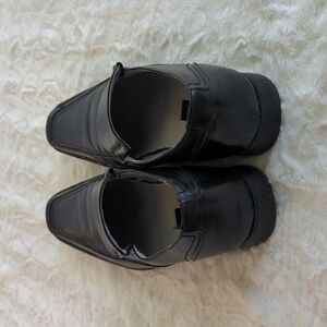 Madden by Steve Madden M-Ranch style loafers, black in color, genuine leather lining, rubber sole, elastic gore on top of foot, excellent used condition, size 9