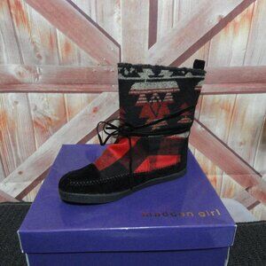 Madden girl Jackman style plaid flannel moccasin style boot sz 8. NWT and box