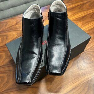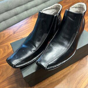 Madden men's black leather ankle boot, slip on w/ side zipper, size 10