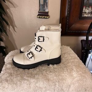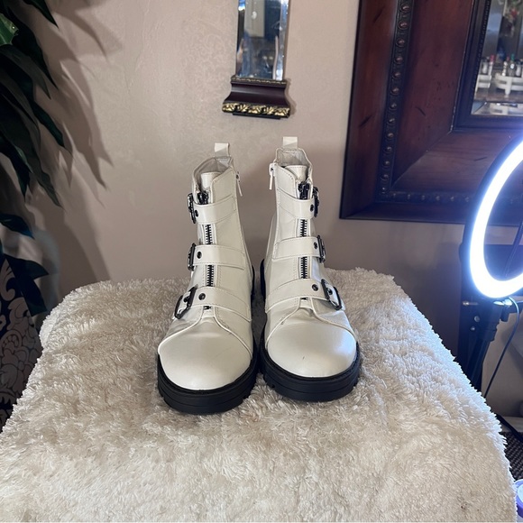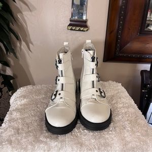 Kids madden nyc high top booties and white three buckles with strap size 4 zip on the inside gently used