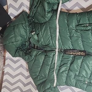Beautiful new Madden emerald green packable puff jacket. Comes with bag so you can take on and off and for safekeeping. Offers welcomed.