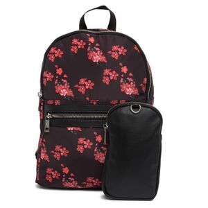 Madden Girl Mini Backpack & Pouch Bag, Lightweight, Black Red Floral, NWT