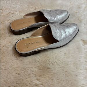 Elegant silver mules with a sleek design. Ideal for casual or formal wear.