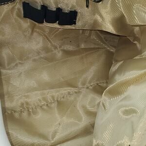 Pre-Owned Condition: there are a couple small issues - there are a few pen marks inside on the lining. Most are on the bottom on the bag. Otherwise, the lining is clean and nice. The other issues involved the black piping along the bottom of the purse. There is a small spot where the vegan leather has a peeled a bit and a few other areas that are a little scuffed up. The pattern and texture of this bag make the flaws well hidden.