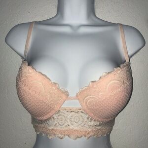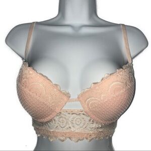 Beautiful Molded contour cup underwire bra. Gorgeous scalloped lace and double strap back detail. Fabulous light peachy pink color.