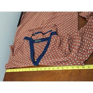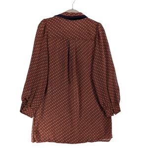 Maddy K Printed Tunic L Orange Long Collared Top Button Up Blouse Everyday Work