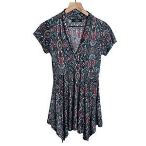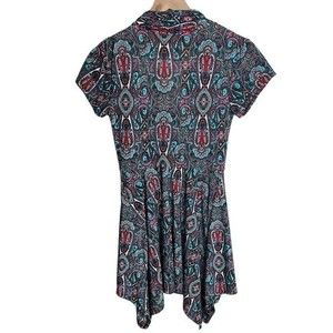Made By Johnny Womens Multicolored Paisley V Neck Handkerchief Hem Mini Dress Small