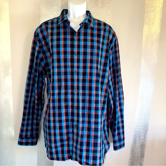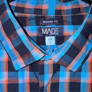 Made Cam Newton Men's 2XL L/S Button up Blue Orange Plaid Shirt Modern Fit