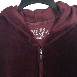Made For Life Full Zip Velour Hoodie Hooded Jacket Burgundy Women's Size Large