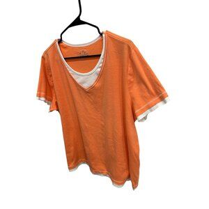 Made For Life Orange White Short Sleeve V-Neck Top Sz 2X
