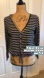 Made For Me 2 Look Amazing brand Cotton black & white striped crop with long sleeves and elastic waist that has a bow string in front. Great v-neck top that also has sewn in buttons and has some stretch to it! There is one pocket on wearer’s left as shown too! No stains or flaws in good lightly worn condition! Length from shoulder to hem is 18.5”, armpit to armpit is 20.5” and can stretch to 24”.