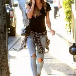For a laid-back and cool outfit, dress in a jcpenney Made For Life Short Sleeve V Neck Mesh T Shirt Tall and light blue ripped skinny jeans — these two pieces work pretty good together. Olive cutout leather ankle boots are the simplest way to add a dose of refinement to your look.