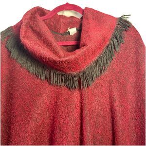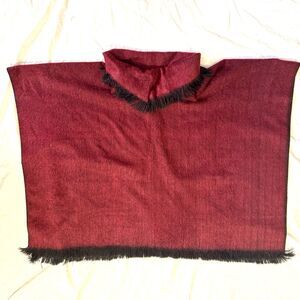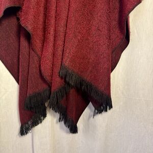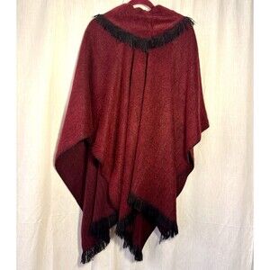 Made In Ecuador Faux Alpaca Acrylic Pullover Shawl Cape Deep Red W Black Fringe
