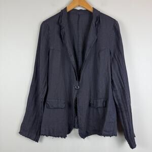 Made In Italy 100% Linen Jacket Womens Large Blue One-Button Raw Hem Lightweight