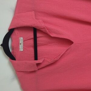 100% cotton art to wear pullover top, dolman sleeves, mother Pearl button detail on the side gauzy knit fabric.