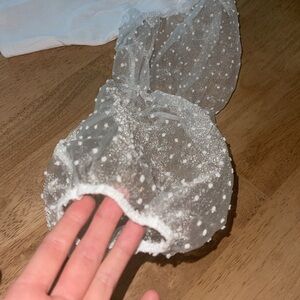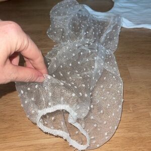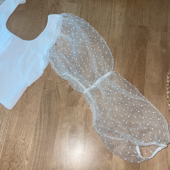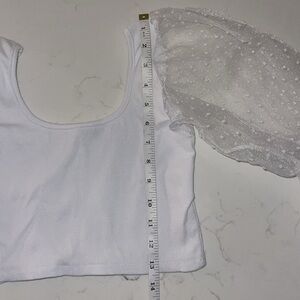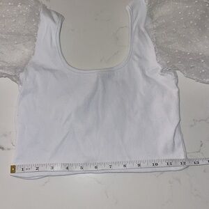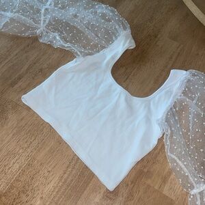 White tank with clear puffy sleeves. Crop Top.