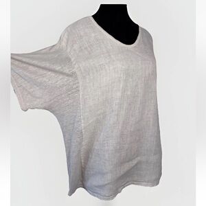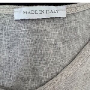 Made In Italy Linen Blouse Sz M Womens Tan Top Artsy Shirt Lagenlook Beachy Boho