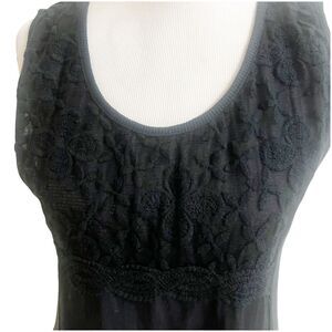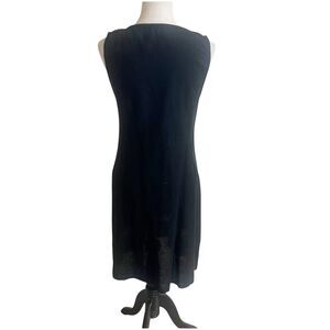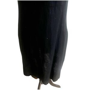 Made In Italy Linen Sheath Dress Black Size M/L Embroidered Bodice Crochet Hem