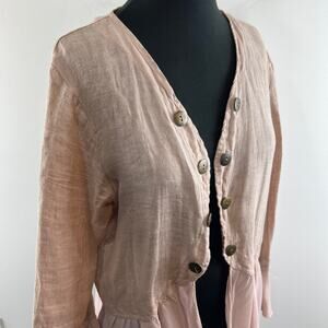 Made In Italy Nude Beige Long Sleeve Button-Down Ruffle Hem Cardigan Sweater M L