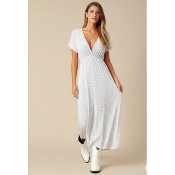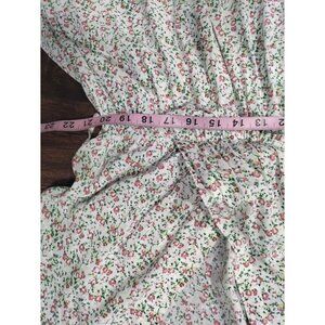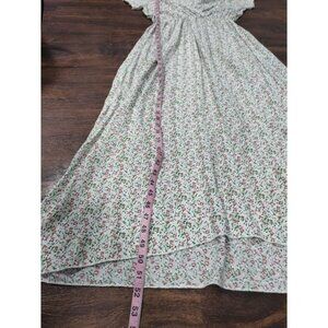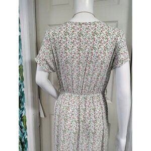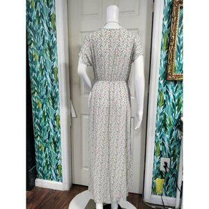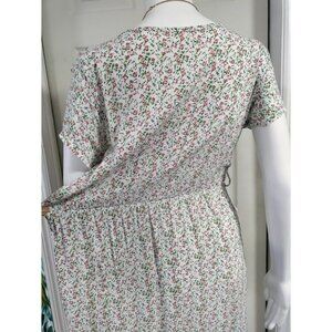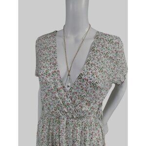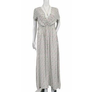 Made In Italy Short Sleeve Floral Print V Neck Maxi Dress White Pink Women's L