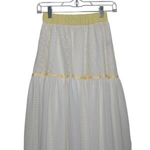 Made In Jiwa White with Yellow Long Ladder Lace Skirt (Handmade) Size XS