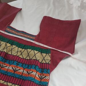 Made In Mexico Red Maxi Dress with Colorful Embroidered Patterns.