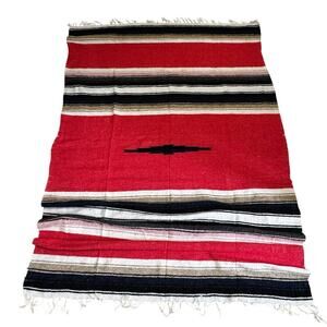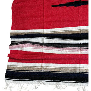 This Made In Mexico Saltillo Blanket is a handmade piece that embodies Mexican culture, specifically from the region of Saltillo. The red and multi-color design adds a touch of Southwestern flair to any space. Measuring 52"x78",(not including fringe) this unique and authentic piece is perfect for adding a touch of tradition and craftsmanship to your home decor.