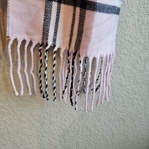 Made In Scotland 100% CASHMERE Scarf With Fringe Pink/Black Plaid 12 x 72"