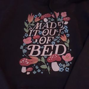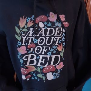 Made It Out Of Bed Mushroom Floral Design Unisex Black Hoodie - Size L