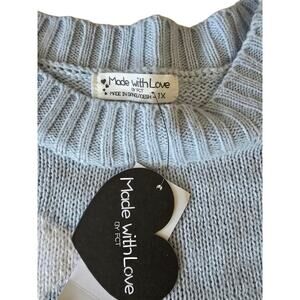 Cozy up in this adorable Made With Love pullover sweater! Featuring a beautiful blue cloud pattern, this sweater is perfect for adding a touch of whimsy to your wardrobe.