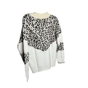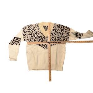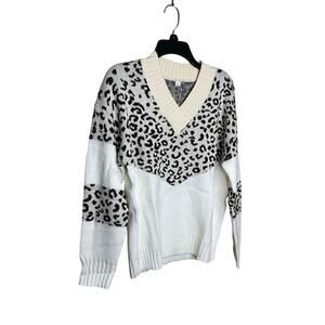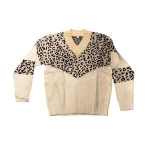 Made With Love Leopard V-Neck Sweater Ribbed Knit Pullover Beige Black Sz XL NWT