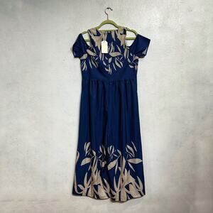 Made With Love Navy Floral Cold Shoulder Wide Leg Jumpsuit Sz M NWT