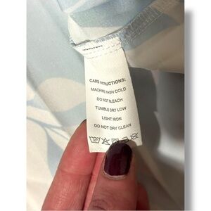 Very lightweight and airy fabric, wooden buttons down top front with flattering empire waist and casual t-shirt short sleeves