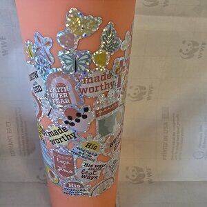 This 20oz orange skinny tumbler features different empowering Christian messages such as "Made Worthy" — a daily reminder of your God-given value.