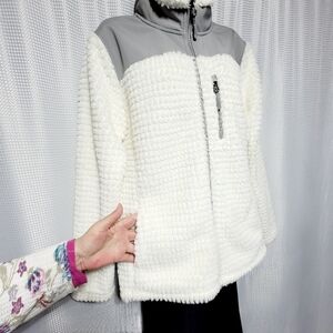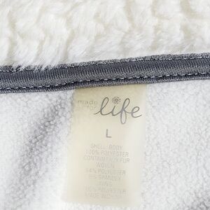 Made for Life Faux Fur Fluffy Soft White & Grey Zip Jacket Women's L