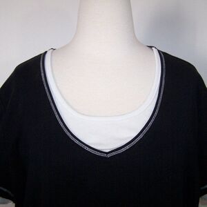 Made for Life T Shirt Top Womens Plus 3X Short Sleeve Black White Stretch 2Fer