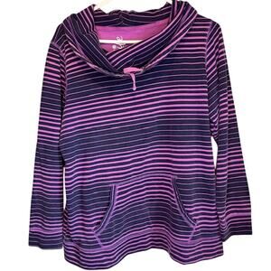 Made for Life Womens Sz Lg Pink/Purple Striped Cowl Neck Sweatshirt Loungewear