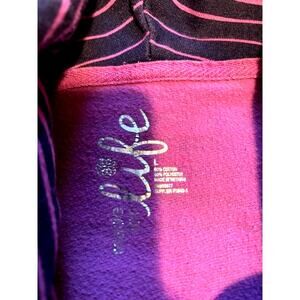 This Made for Life sweatshirt is in good condition and ready for a new home! It features a cowl neck and a stylish pink and purple striped pattern. Perfect for lounging or a casual outing, this pullover will keep you cozy and chic. Don't miss out on this comfy and fashionable addition to your wardrobe!