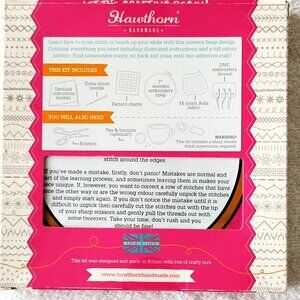 This is a cross stitch kit featuring a hummingbird theme. The kit includes all the necessary items such as a needle, pattern, embroidery hoop, fabric, threads, and instruction booklet. It is a framed picture format without a frame, allowing crafters to create a beautiful piece of cross stitch art showcasing hummingbirds. This kit by Hawthorn, made in Britain, is ideal for those who enjoy cross stitching and want to create a charming design of hummingbirds.