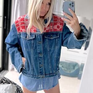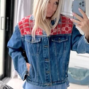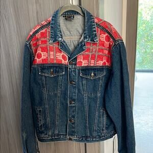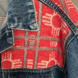 Made in ENGLAND - RANCH EXIT rare denim jacket cotton tribal wool accents