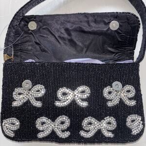 Made in India Black & Silver Bow Beaded Bag Purse Viral TikTok New Hard To Find