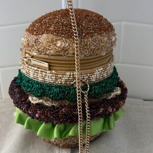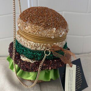 Made in India Hamburger Beaded Bag - Brown/Tan, Green, White-Gold Chain-Viral