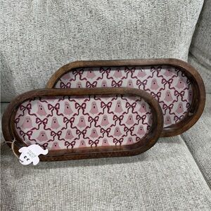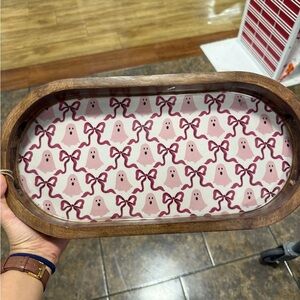 Two Made in India Wooden Halloween Pink Ghost and Bows Trays.