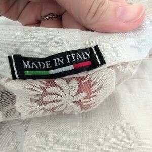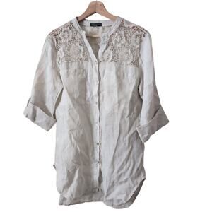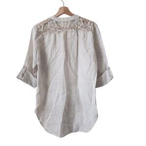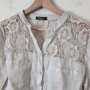 Made in Italy 100% Linen Top Womens Small Button Up Tunic Beige Neutral Lace