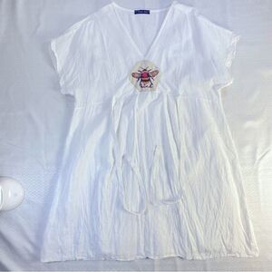 Made in Italy 100% Linen White Boho Tunic Top with Embroidered Bee