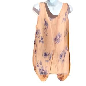 Pure Silk Floral Upper Layer Top with Solid Pink Lining. Chest 22”. Length 29”. Item 14